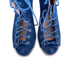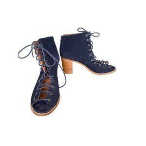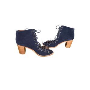 Jeffrey Campbell Cors suede bootie in navy. Laces up to your ankle.