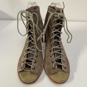 Jeffrey Campbell Cors Lace Up Bootie Sandal Gray Suede Corset Block Heel…