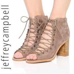 Jeffrey Campbell Cors bohemian peep toe lace up suede leather chunky stacked heel booties
