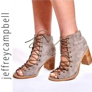 Jeffrey Campbell Cors Peep Toe Lace Up Suede Chunky Stacked Heel Boot Sandals 6
