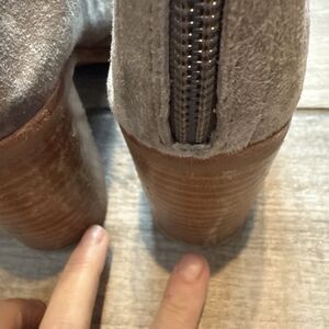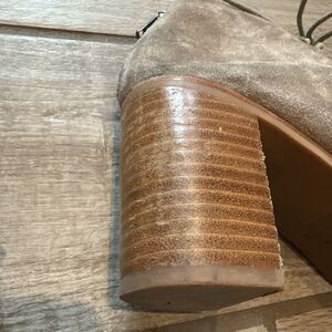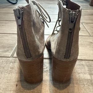 Jeffrey Campbell Cors Suede Gladiator Lace Up Bootie 7.5 Peep Toe Good preowned condition with light wear at toes, discoloration to insole and substantial surface marring to block heels. Please see all photos. Cottage, Western, Boho, Fairy