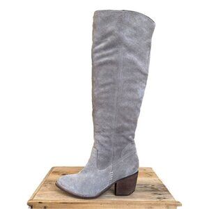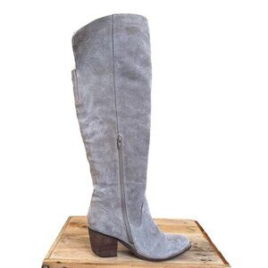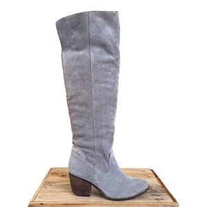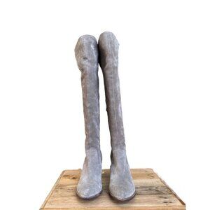 Jeffrey Campbell Cream Gray Over the Knee Boots Suede Chunky Heel
