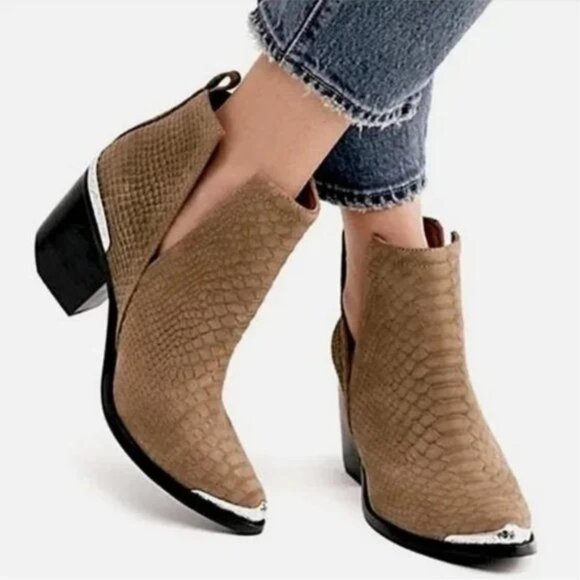 Jeffrey Campbell Cromwell Suede Bootie in Taupe Snakeskin