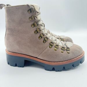 Jeffrey Campbell Culvert suede winter warm fur lace up boots block heel womans 8