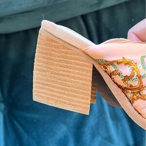 Jeffrey Campbell Cyrus Scarf Bow pink Mules Stacked chunky heel size 7.5 nwt