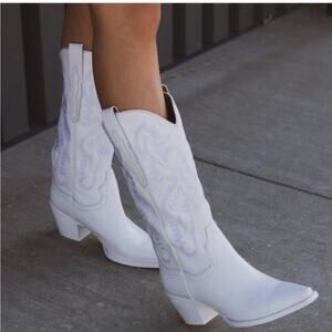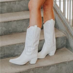 Jeffrey Campbell Dagget Cowgirl Western Boots Size 7 Textured White