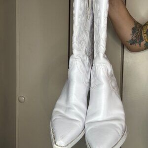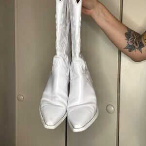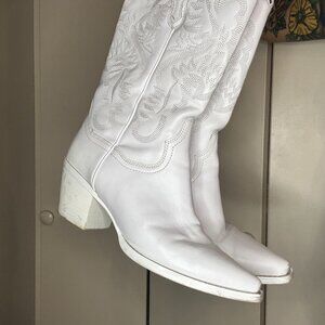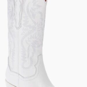 Ornate stitching furthers the rugged Western style of this iconic boot balanced by a slender toe and stacked block heel.