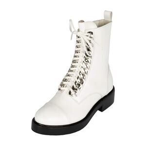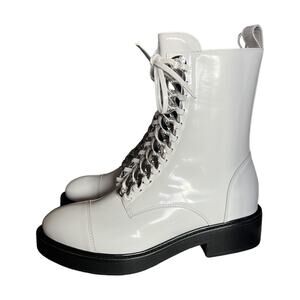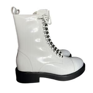 Jeffrey Campbell Damon 2H White Box Sliver Lace Up Combat Boots Size 8