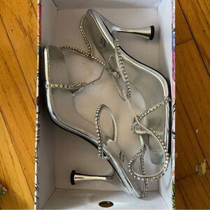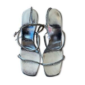 Jeffrey Campbell Demonica Sandals Silver shoes high heels Rhinestone Revolve 9.5