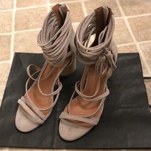 These heels are the perfect sandals for summer and a blogger favorite! The material seems a little delicate since it’s already falling out from one wear. (toe area, 5th pic)