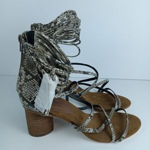 Jeffrey Campbell Despina Sandals Size 11 Taupe Suede Python Snake Print Strappy