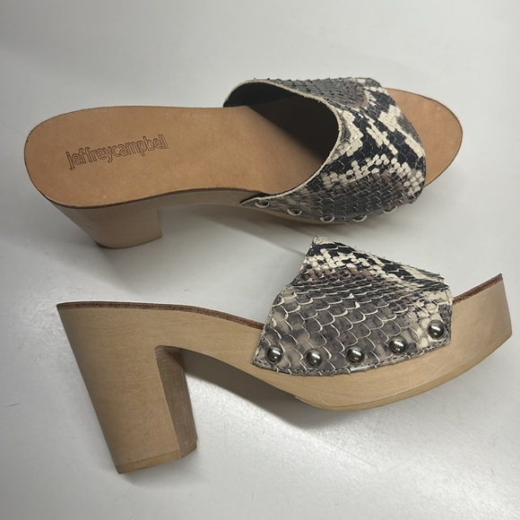 Jeffrey Campbell Dlight Chunky Heels Clogs Mules Leather Sandal Snakeskin Size 7