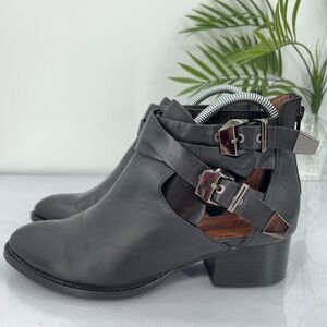 Jeffrey Campbell Everly Boots Women 7 Black Leather Cutout Straps Buckle Shoes
