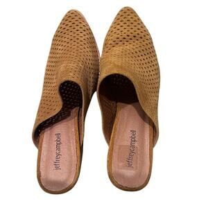 Jeffrey Campbell Favela Perforated Tan Cognac Suede Mules Slides Suede, size 10