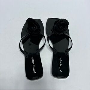 Jeffrey Campbell Fleuris Jelly Flip Flop Black Floral Thong Sandle Size 9 NWOT