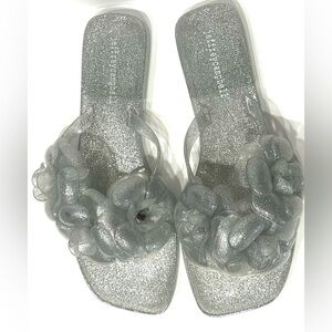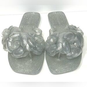 Jeffrey Campbell Fleuris Jelly Flip Flop Thong Sandals Size 8 Silver Glitter New