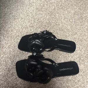 Jeffrey Campbell Floral jelly slide sandals in black matte embellished flowers