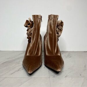 Jeffrey Campbell Florette Natural Crushed Velvet Pointy Toe Heel Bootie 7