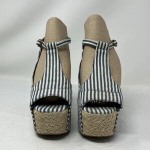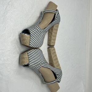 Jeffrey Campbell Foxy Platform Sandals Heels Nautical Blue White Striped Sz 6.5
