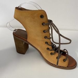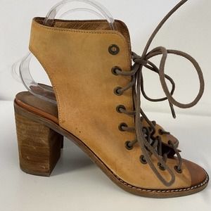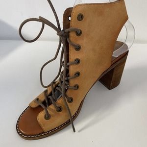 Jeffrey Campbell Free People Minimal Lace Up Bootie Sandal Cognac Leathe…