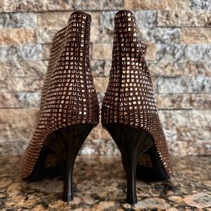 Jeffrey Campbell "Glammed" booties in bronze w/rhinestones over satin