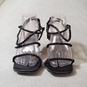 Jeffrey Campbell Glamorous Sandal Heels Black Satin Black Size 7.5 JCAM-WZ1470
