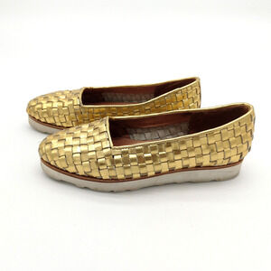 Jeffrey Campbell Gold Woven Platform Loafers Size 7.5 Ibiza Slip On Metallic