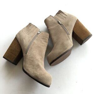 Jeffrey Campbell Hanger Suede Booties Womens Size 10M Tan Leather Chunky Heels