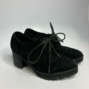 Jeffrey Campbell Havanas last KIDDO black suede block heel Oxford shoes size 7.5