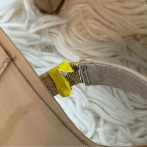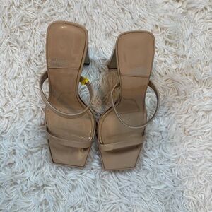 Jeffrey Campbell Hustler block Heels neutral Patent leather slides SZ 7.5 straps