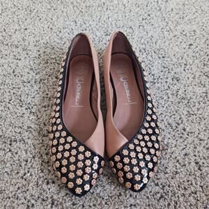 Jeffrey Campbell Ibiza Gold Studded Flats Size 8.5 Handmade Slip On Flower