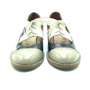 Jeffrey Campbell Ibizi leather wing prayer shoes, two toned, patent leather, lace up size: 11