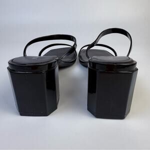 Details: Minimal jelly heeled sandal. A blunt toe and a pair of slender straps bring an effortless finish to any warm-weather look in a sandal lifted on a modest architectural heel. 2.5” heel. Size 9. Excellent Preowned Condition.