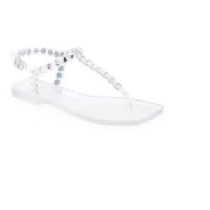 Jeffrey Campbell Jemmin Embellished T Bar Clear Jelly Sandals NIB 10