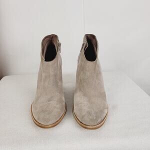 Jeffrey Campbell Kamet grey suede round toe stacked square heel bootie Size 8