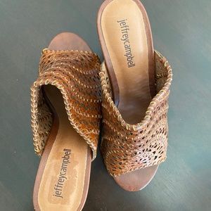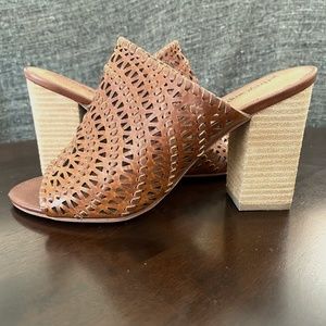Jeffrey Campbell Kelowna Perforated Mule Sandal in Cognac Leather