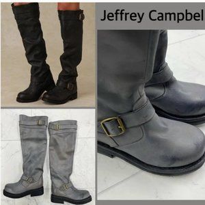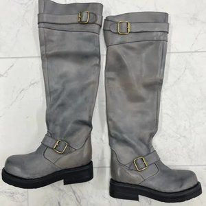 New in box, soft distressed leather, knee high, they have small scuffs from trying on. 1.5 "heel. The color is gray. Retail $298.00