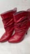 VERY RARE! Red leather ankle boots with subtle snakeskin/cinched design and kitten heels. Comes with extra heel caps and one dust bag for both shoes.