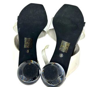 Jeffrey Campbell Laterall Ball Heel Slide Sandal Black Patent/ White/ Clear 5