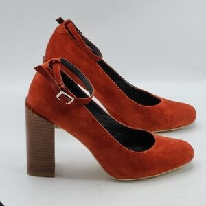 Jeffrey Campbell Leather Suede Mary Jane Block Heels In Rust Size 8.5