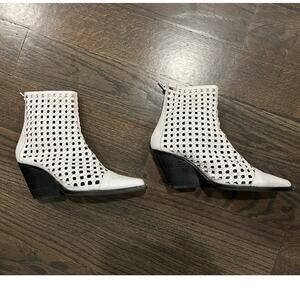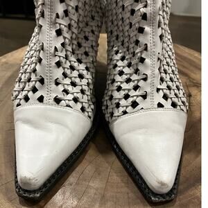 Jeffrey Campbell Leather White Waven Woven Wicker Booties Boots Shoes 7.5 $245