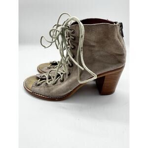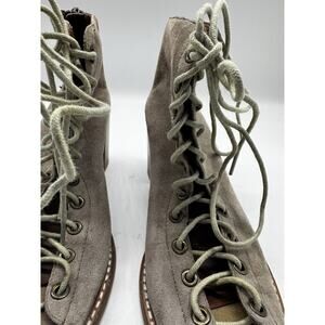 Jeffrey Campbell Light Brown Cors Suede Lace Up Sandals Block Heel Sz 7 Grunge
