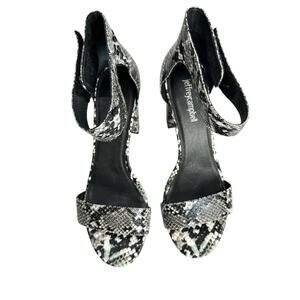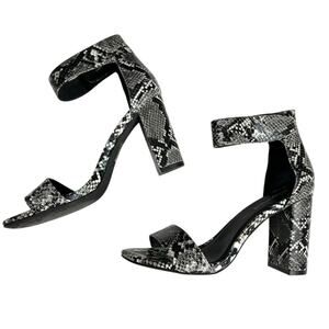 Jeffrey Campbell Lindsay Heeled Sandals Black Grey Snake Animal Print Size 7.5