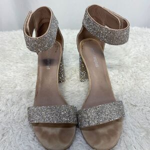 Sparkle and shine at your next event with these dazzling Jeffrey Campbell "Lindsay-JS" sandals! These stunning heels feature wide straps and a chunky block heel completely embellished with brilliant rhinestones, ensuring you'll turn heads with every step. The nude/beige tone of the base allows the crystals to truly pop, making them perfect for parties, weddings, proms, or any special occasion where you want to add a touch of glamour.