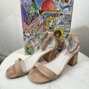 Jeffrey Campbell Lindsey Taupe Suede Block Heel Sandals Size 7.5