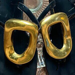 Jeffrey Campbell sandals, Linques flip flop, black gold square-toe sandal, women’s size 7 leather sandals, fashion flip flop, chic summer sandal, designer black and gold shoes, statement buckle sandals, Jeffrey Campbell flats, edgy square toe sandals, trendy strappy shoes, bold gold accent footwear, EU 38 US 7 Jeffrey Campbell, unique leather sandals, cool fashion-forward flats.