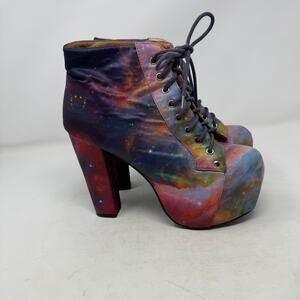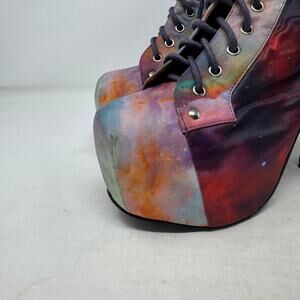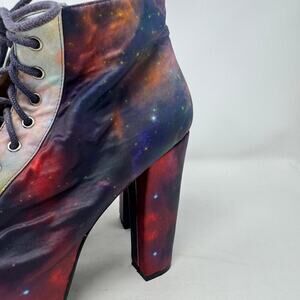 Jeffrey Campbell Lita Galaxy Print Platform Lace-Up Boots Multicolor Size 9M