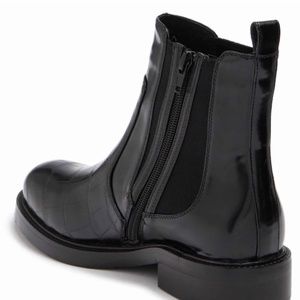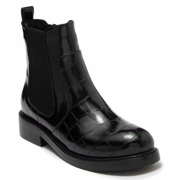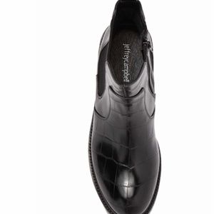 Jeffrey Campbell Lomon Croc Embossed Low Heel Leather Black Ankle Chelsea Boots