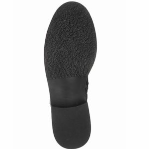 Side zip closure. Elastic goring side train. Croc-embossed leather construction