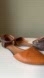 Jeffrey Campbell "Ibiza Last" line, Lovins ballet flat or low-heeled pump with cut out sides an ankle strap and pointed toe tan color with multicolored glittered heel & strap